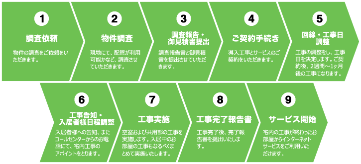 集合住宅向けISPシステムの設備かを共用部分から宅内まで一括設置いたします。