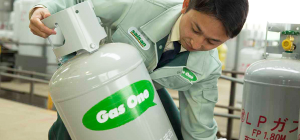 LPガスは気体ですが圧力をかけて液化した状態でLPガス容器(ボンベ)に入っています。使うときは気体となり、その体積は約250倍にもなります。 LPガスは本来、無色無臭です。ご家庭用ガスが臭うのは、漏れた場合にわかるように玉ねぎの腐ったような臭いを付けてあります。