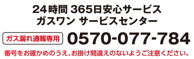 ご不明な点につきましてはガスワン サービスセンターまでお問い合わせください。