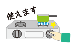 4.ガス漏れのないことを確認するとセキュリティ表示の点滅が消え、再びガスが使用できる状態になります。 ガスコンロの火をつけたり、お湯を出してガスの使用が確認できれば復帰操作は完了です。