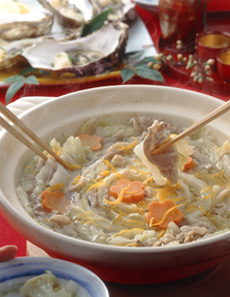 ねぎに血行促進、抗酸化作用があり、かきには免疫機能を高める亜鉛が多く、食べて元気になる組み合わせ。