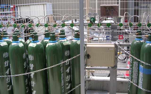 圧縮ガスまたは、液化ガス容器を複数設置して供給する方式です。ご使用量に応じて設置本数を変えることができます。
