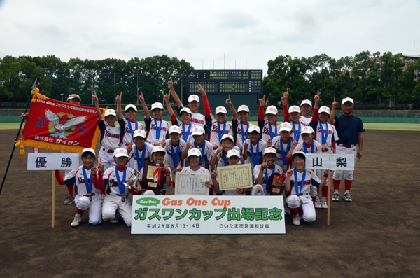 8月14日(土)・16日(日)にかけて、第9回ガスワンカップ学童軟式野球選手権大会及び、第4回ガスワンカップ女子学童軟式野球選手権大会が開催されました。2日間にわたり関東及び埼玉県内の各球場で熱戦が繰り広げられ、GasOneカップ学童軟式野球選手権は神奈川県代表の元宮ファイターズが優勝し、GasOneカップ女子学童軟式野球選手権大会は昨年に続き、山梨選抜が優勝しました。