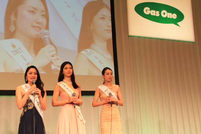 ご来賓代表として、さいたま市清水市長様・㈱ジャパンガスエナジー吉田社長様よりご挨拶を頂き、ガスワン会会長代表の池田会長の乾杯で始まった懇親会では、ミスユニバース2017埼玉代表の3名も駆けつけ、会場に花を添えていただきました。