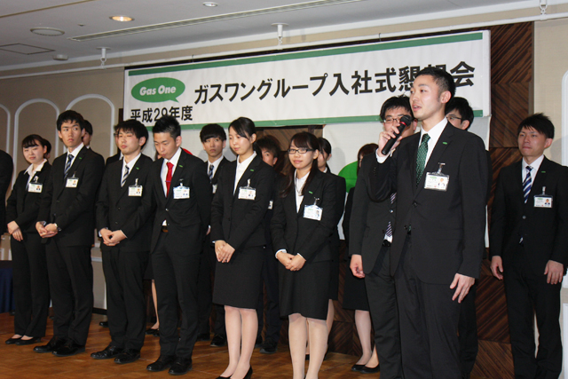これに対し、新入社員を代表して、渡辺智紀さんが、創業100周年ビジョン「我が国を含め、アジア・太平洋地域において総合エネルギー・生活関連事業でLeading企業になる」の実現に向け全力で精進することを誓い、その思いに応えました。
