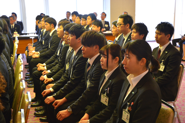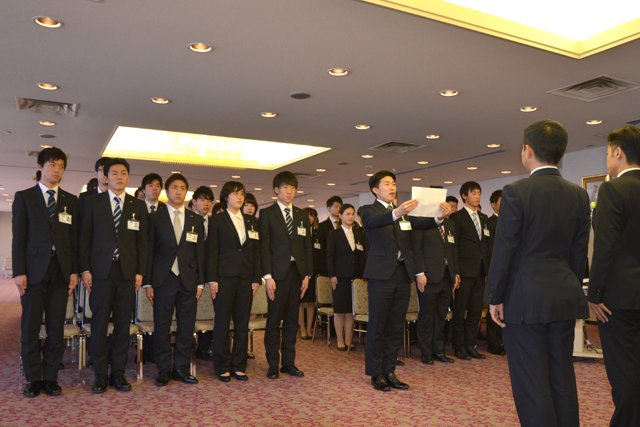 これに対し、新入社員を代表して、湯浅洋太さんが、「2045年に我が国を含め、アジア・太平洋地域において総合エネルギー・生活関連事業でリーディング企業になるという創業100周年ビジョンの実現に向け、全力で精進します。」と、宣言しました。