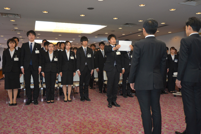 これに対し、新入社員代表は「我が国を含め、アジア・太平洋地域において総合エネルギー・生活関連事業でLeading企業になる」の実現に向け全力で精進することを誓い、その思いに応えました。