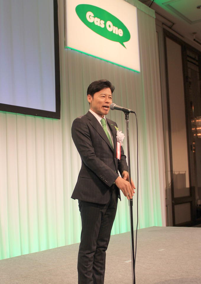 第一部ビジネスミーティングでは、弊社社長川本武彦が本年度の基本方針を、執行役員・LPガス販売部部長中山隆が販売店各社様向けの支援策を発表し、「Gas Oneエネ・ベストキャンペーンⅡ、ガスワンだフルキャンペーン、エネルギー事業部での電力事業・都市ガス事業、さらにアクア事業部での宅配水事業で優秀な成績を収めた販売店、代理店の表彰を行いました。