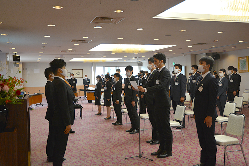 今年は出席者同士の距離をあけるなど“三密対策”を徹底したうえで、37名の内定者が出席しました。
