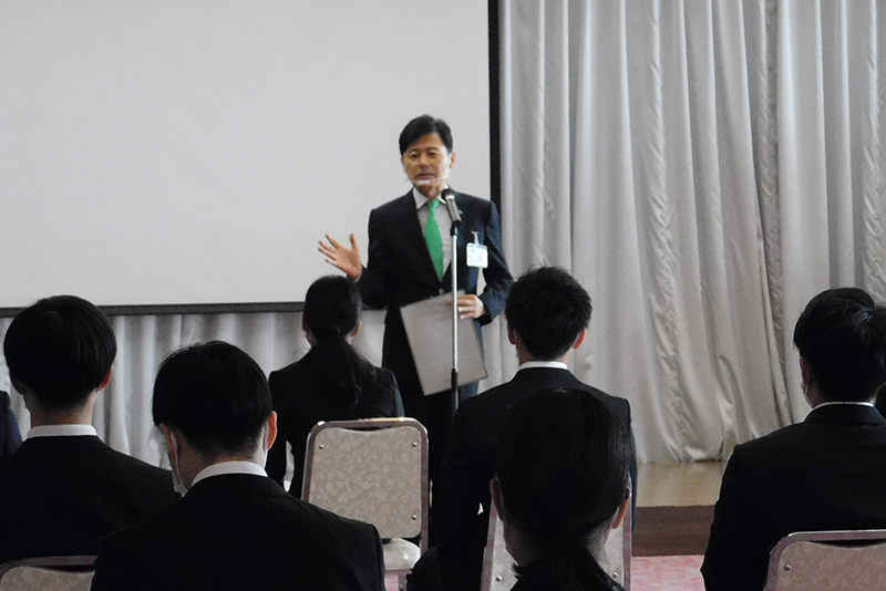 社長川本武彦は、「創業以来“変わるリスク”より、“変わらないリスク”の方がはるかに大きいと考え、環境変化に対応し、新たな事業を展開してきた。今の世界は閉塞感が漂っているが、当社は今までもピンチをチャンスとし、様々な困難を乗り越えた。そして、これからの未来に向けて変化を続けていくには、皆さんのような若い力が必要。2045年創業100周年を迎える時には、皆さんが幹部として経営を指揮する立場で活躍されることを期待している。今日が一番若い日だと思い、是非、沢山のことにチャレンジしてください。」と未来の幹部社員に熱いメッセージを贈りました。