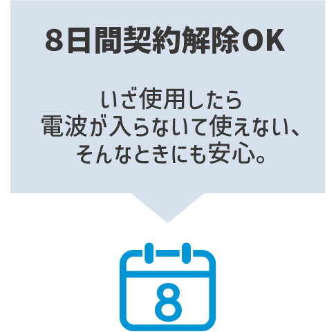 ・WiMAX+5G端末が着荷した日(課金開始日)または、契約書面を受領した日のいずれか遅い日から起算して8日を経過するまでの間、初期契約解除制度を利用して本サービスを解約できます。