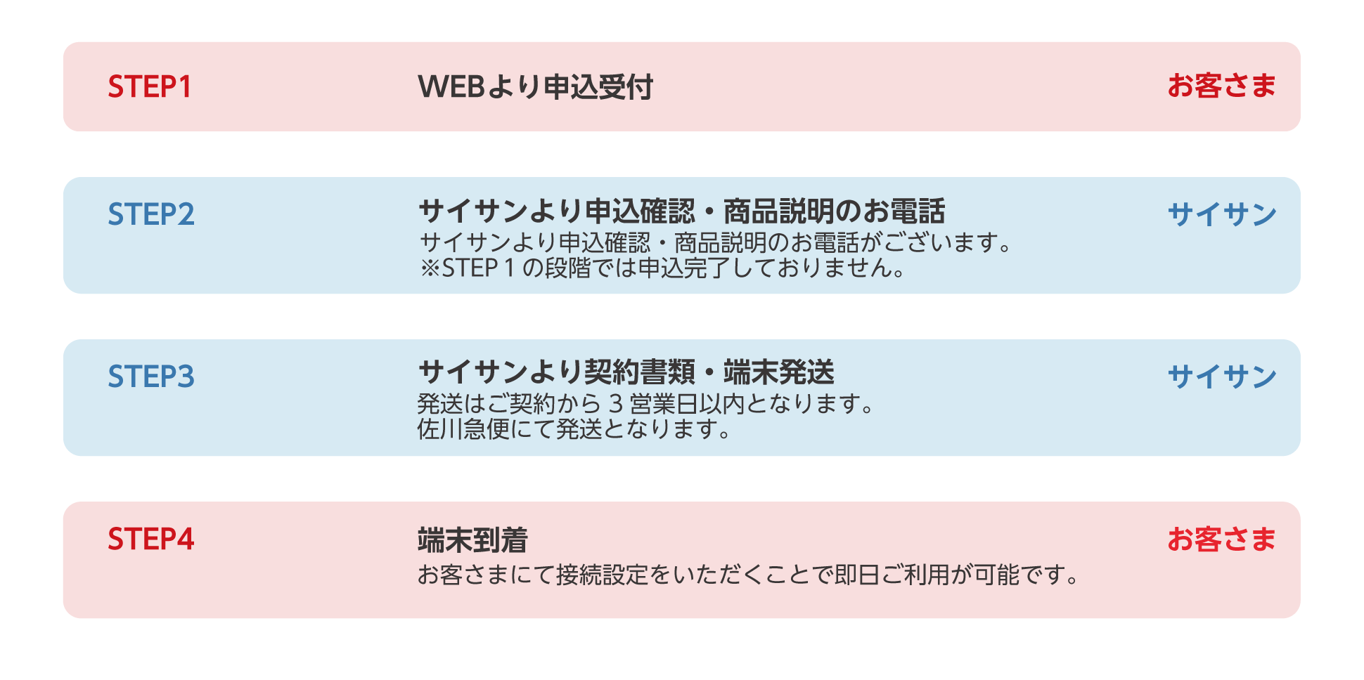 ※ 3台以上をお申込みの場合は、弊社から確認のご連絡をさせていただきます。