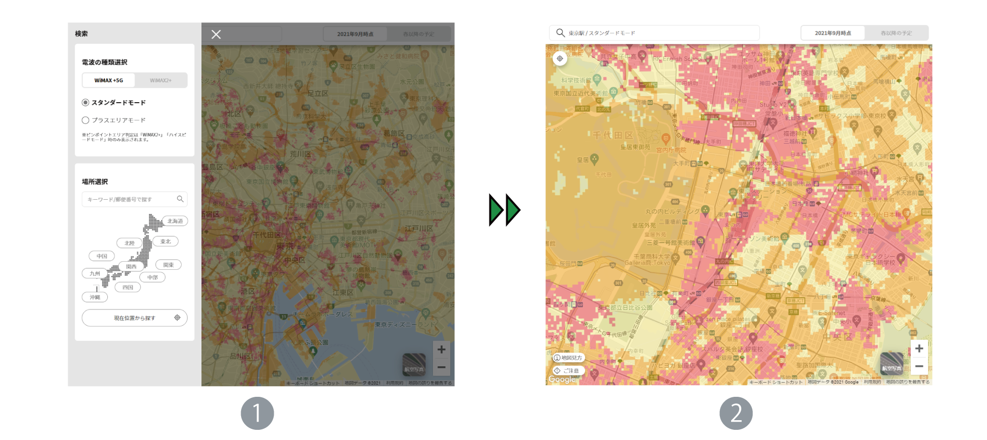 WiMAX +5Gサービスは、利用可能なエリアに応じて、スタンダードモード(標準)とプラスエリアモード(オプション)の2つのモードにて高速通信サービスを提供しています。 スタンダードモードでは、WiMAX 2+エリアに加え、au5G/4G LTEの一部のエリアにてご利用いただけます。 オプションのプラスエリアモードをご利用いただくと、スタンダードモードよりさらに広いau5G/4G LTEエリアにて高速通信サービスをご利用いただけます。