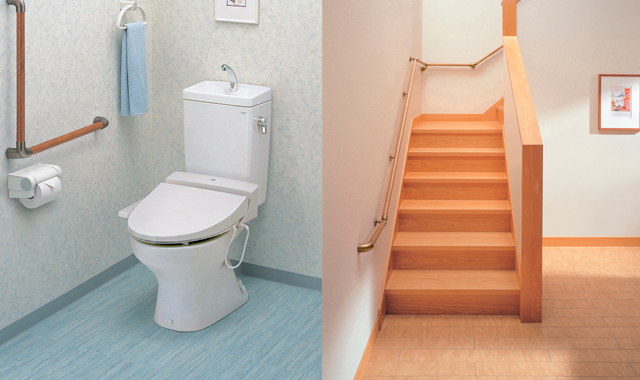 手すりの取り付けなどの簡単な工事から、段差解消、トイレ・浴室の改装、家屋全体にわたる大規模な改修まで責任をもってプランニングからお手伝いいたします。