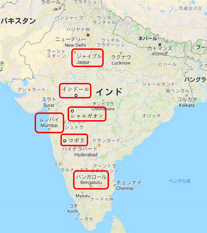 | 主な拠点 | LPガス充填所および貯蔵施設:マハーラーシュトラ州ジャルガオン、同コポリ 貯蔵能力:合計80トン 2019年10月に委託充填を開始し、ジャイプル、インドール、バンガロールの3地域に販売事業を拡大予定。 |