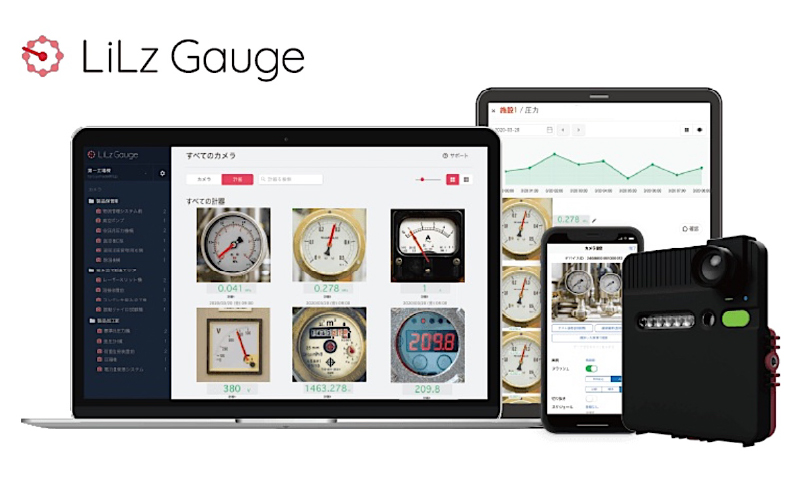 ⼀般⾼圧ガスの供給設備をはじめとする⼯場や病院の各種設備においては、安全に利⽤するために物理的な移動を伴う⽇々の点検に頼っているという課題があります。また今後、より効率的な配送を実現するためにはデータを活⽤した配送計画が必要です。当社は、このような課題を解決するために、まず⼀般⾼圧ガス事業にて「LiLz Gauge」を採⽤し、⾃社活⽤のみならず関連する全てのお客様の点検業務の効率化を⽀援いたします。「LiLz Gauge」専⽤のIoTカメラは電源⼯事不要で設置できるため、ガス応⽤機器をはじめ⽔道・電気設備等に設置されているアナログメーターの点検を容易にリモート化できます。「LiLz Gauge」により保存されたガス残量などのデジタルデータはAPIで容易に取得できるため、計画配送のために活⽤できるようになります。