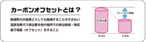 日常生活や経済活動などにおいて避けることができないCO2等の温室効果ガスの排出について、できるだけ排出量が減るよう削減努力を行ったうえで、どうしても排出される温室効果ガスについて、排出量に見合った温室効果ガスの削減活動に投資すること等により、排出される温室効果ガスを埋め合わせるという考え方です。