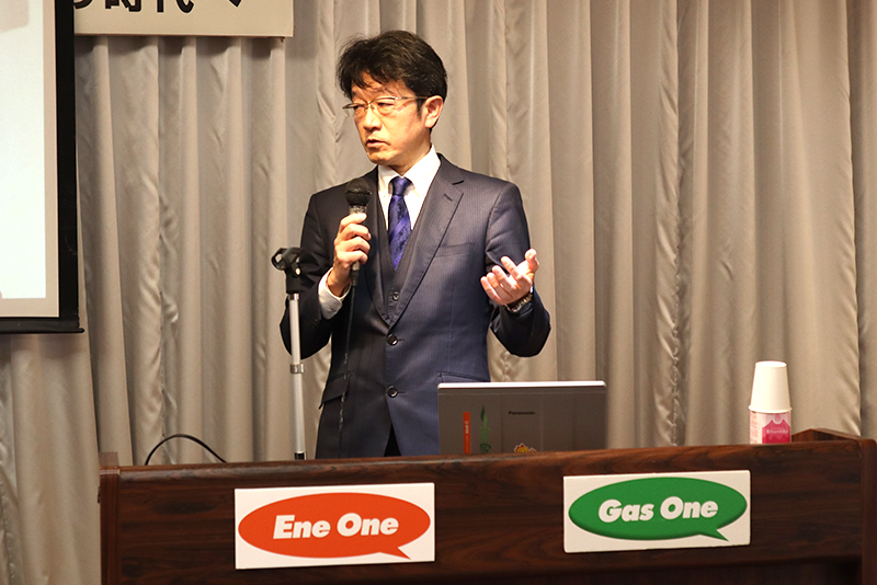 2月9日(木)、Gas Oneグループの株式会社エネワンでんき(東京都千代田区:代表取締役 吉澤正人)は、株式会社サイサン(さいたま市大宮区:代表取締役社長 川本武彦)と共催で、イーレックス株式会社小売統括部副部長の境野春彦氏を招き、特別講演「自由化の中で~電力異常事態、かつてない動乱の時代へ」をサイサンLPガス販売店様、エネワンでんき代理店様・取次店様、Gas Oneグループ社員を対象に開催しました。
