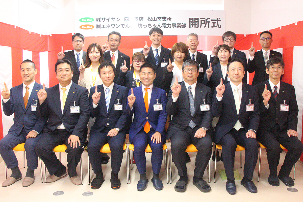 9月4日(月)、松山市内の事業所において「(株)サイサン 四国支店松山営業所 (株)エネワンでんき 坊っちゃん電力事業部 開所式」を執り行いました。
