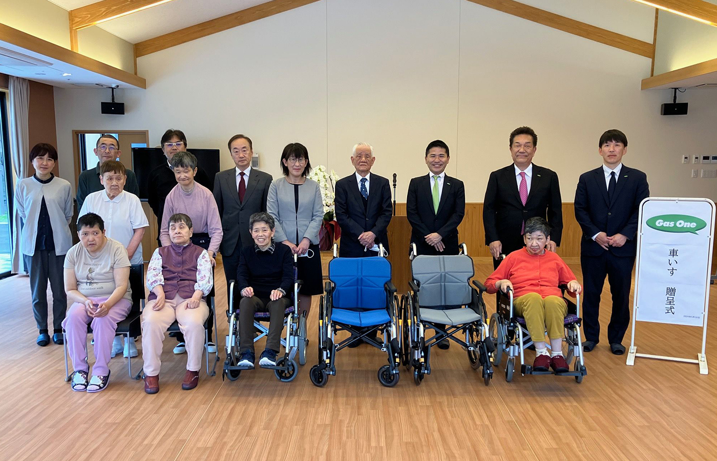 株式会社サイサン(さいたま市大宮区 代表取締役社長 川本武彦)を基幹とするGas One(ガスワン)グループの鬼怒川ガス株式会社(栃木県日光市 代表取締役社長 川本知彦)は、2024年5月16日に社会福祉法人すかい(栃木県日光市 理事長 神内昭一)へ車いす2台を贈呈いたしました。