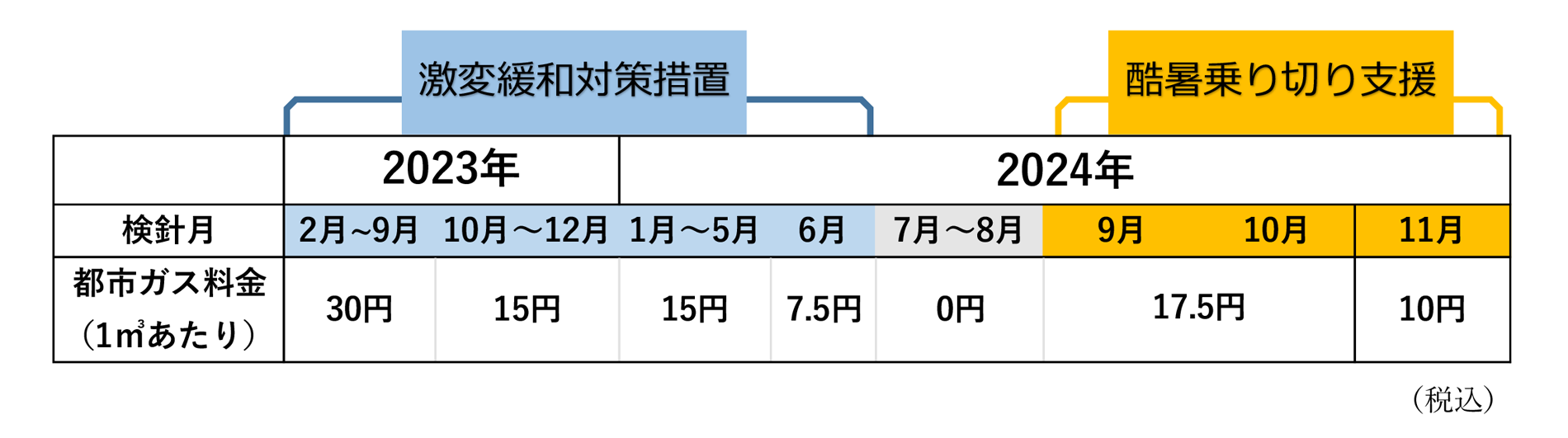 2024年6月21日の岸田内閣総理大臣から説明がございました、「酷暑乗り切り緊急支援」に基づき、弊社は令和6年8月、9月及び10月の3か月における使用分について、電気・都市ガス料金の補助をおこないます。