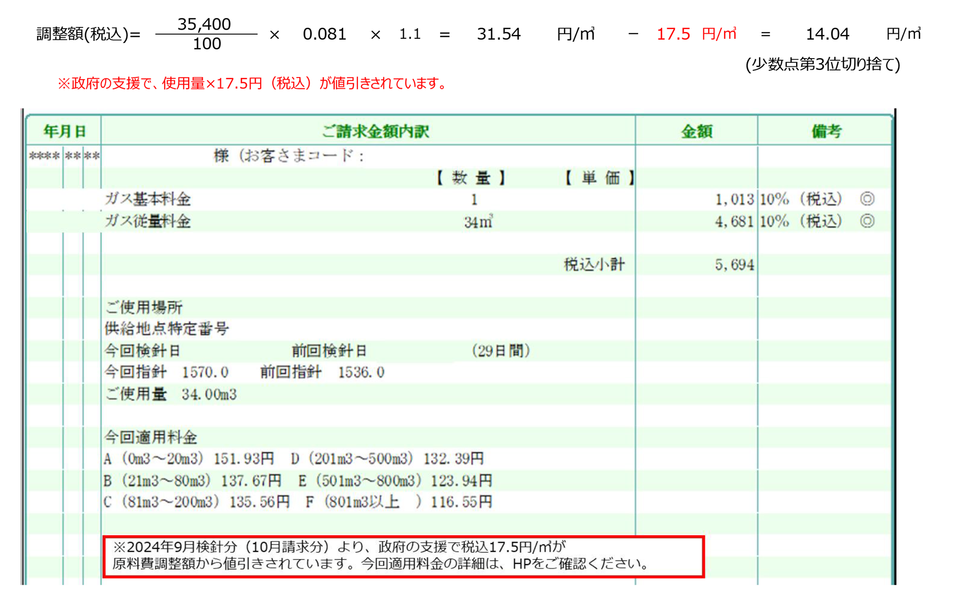 補助金額につきましては、従量料金を算定する際、「原料費調整額」から差し引きし、対応しております。