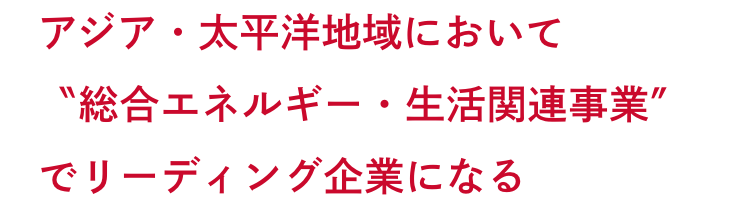 当社の海外事業戦略は、アジア・太平洋地域の人口増・高度経済成長に対応し、現在はモンゴル、ベトナム、インドネシア、バングラデシュ、ネパール、タイ、ラオス、インド、ルワンダ共和国の9カ国10拠点に展開しております。そして創業より国内で培った日本の安全な技術を提供し、安定供給に寄与するとともに、各国のさらなる生活向上と環境保全に貢献していきます。創業100周年に向けて、日本を含め【アジア・太平洋地域において〝総合エネルギー・生活関連事業″でリーディング企業になる】というビジョンを共有し、今後も成長が見込める新興国を中心にLPガスの拡大に注力していきます。