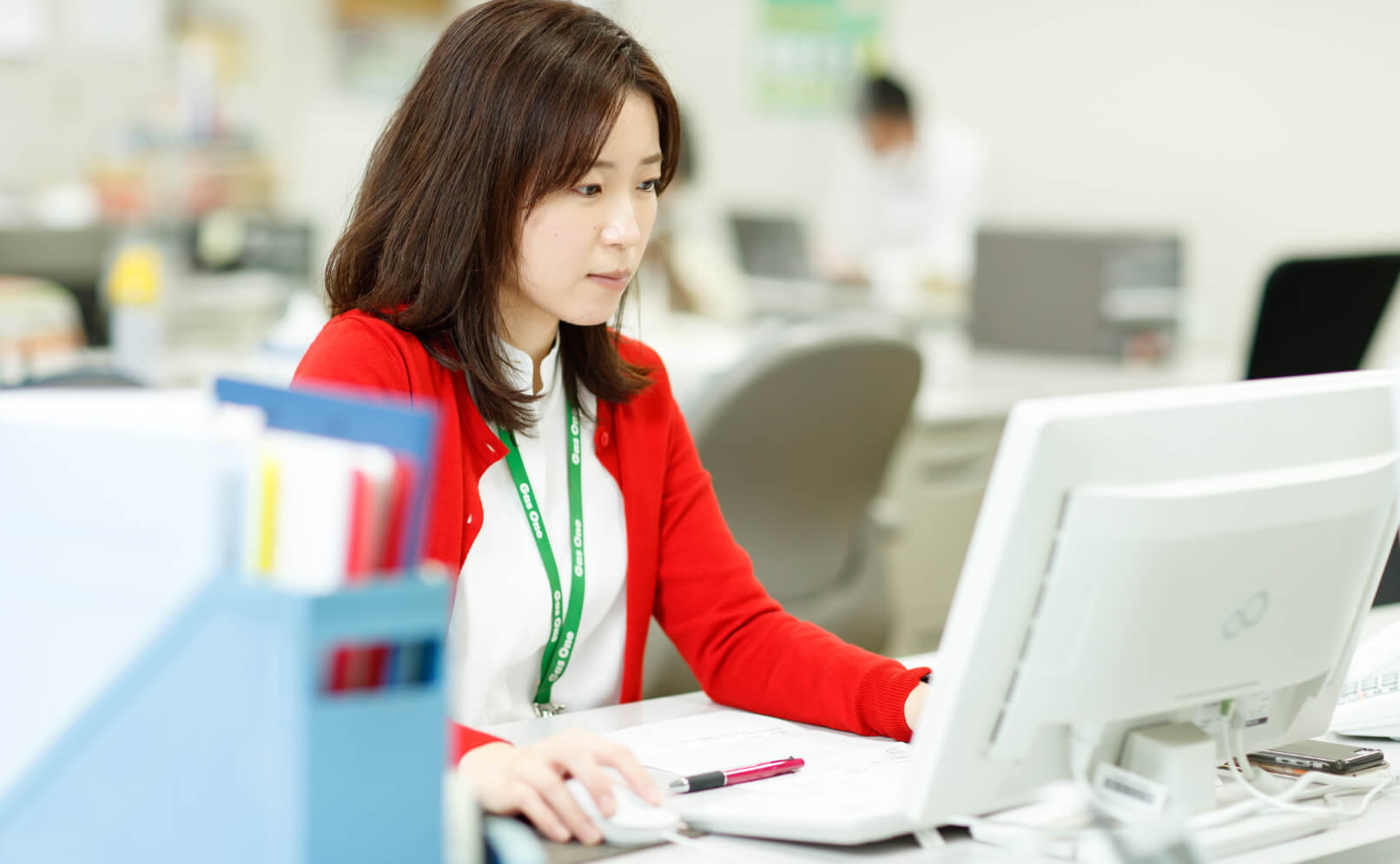 現在所属している家庭用ガスの直売部門は、当社のガスをご利用いただいている一般のお客さまの管理・維持を行っている部門です。私が所属する営業所では、お客さまの登録が約1万件あり、私を含めて数名の事務職で分担して管理しています。お客さまの月々のガス使用量のチェック、請求書の作成・送付、お客さまのお支払状況の確認と支払い催促案内の手配などが主な業務内容になります。毎月のガス使用量はシステムで自動的に登録されますが、中には転居済みで使用量がゼロのものなど、気になるデータもありますので、営業担当と連携してチェックしています。また、営業担当から連絡を受けて、出先では確認できないお客さまの契約書の登録内容や入金状況などを確認して伝えることもあります。常に複数の案件を並行して進めているので、「次に処理をする人がいる作業を優先してやる」ということを自分のルールとしています。優先順位を意識することで、焦らずに取り組むことができますし、営業所全体の仕事が効率的に進むように心がけています。