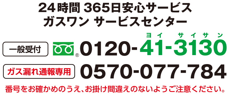 ご不明な点につきましてはガスワン サービスセンターまでお問い合わせください。