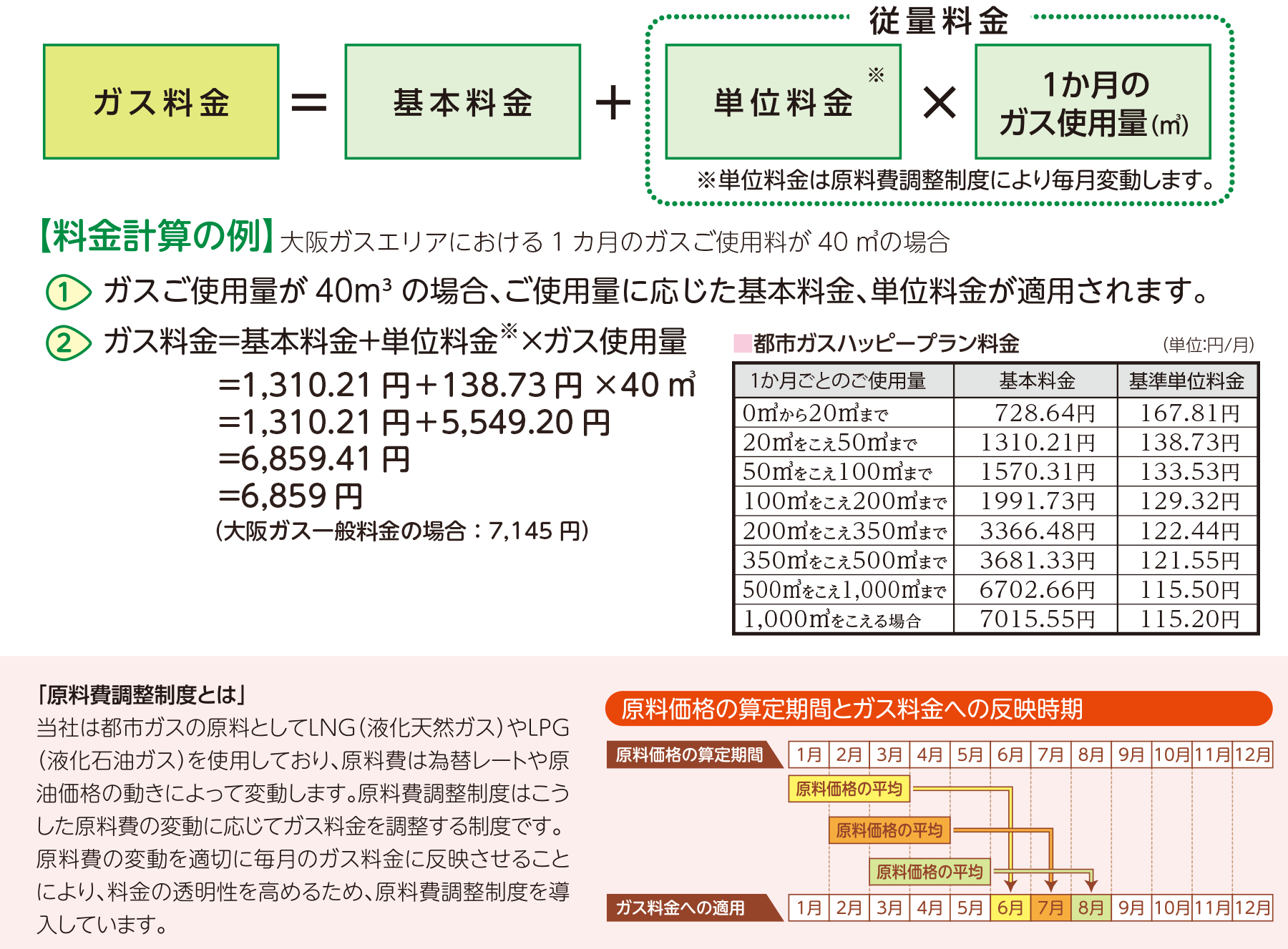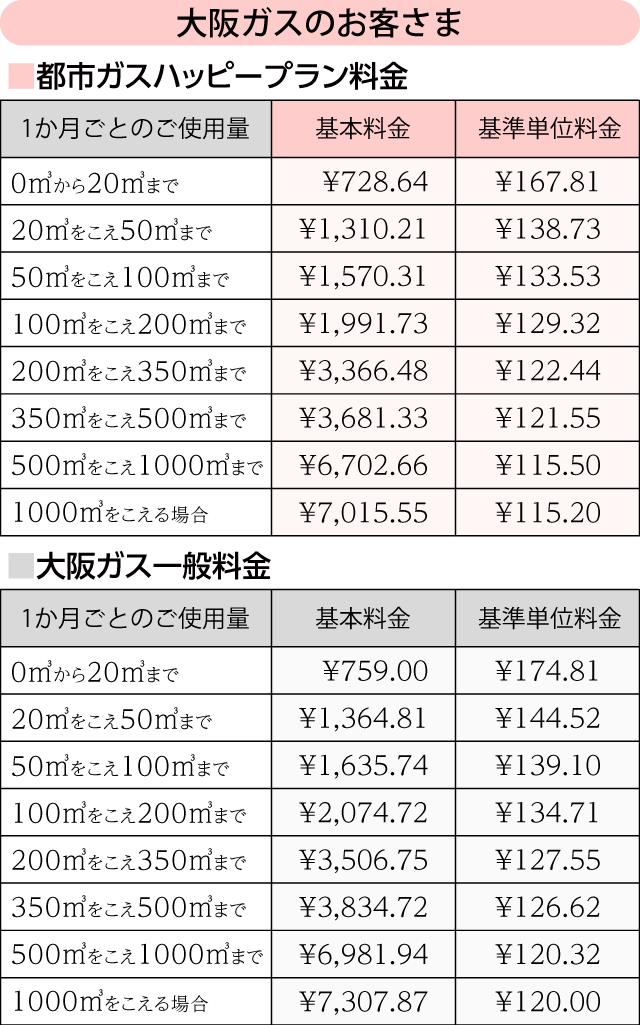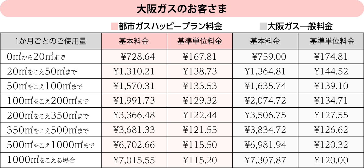 【大阪ガス】都市ガスハッピープラン料金表