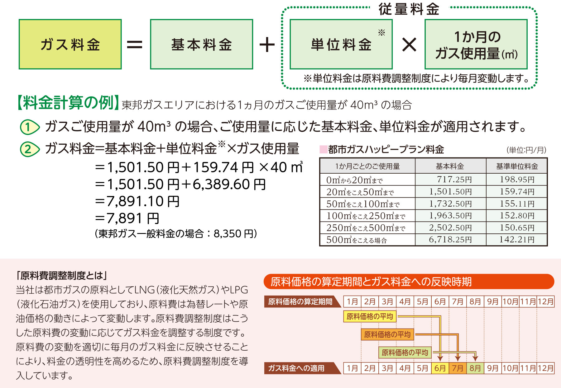 【東邦ガス】原料費調整額及び都市ガス料金表